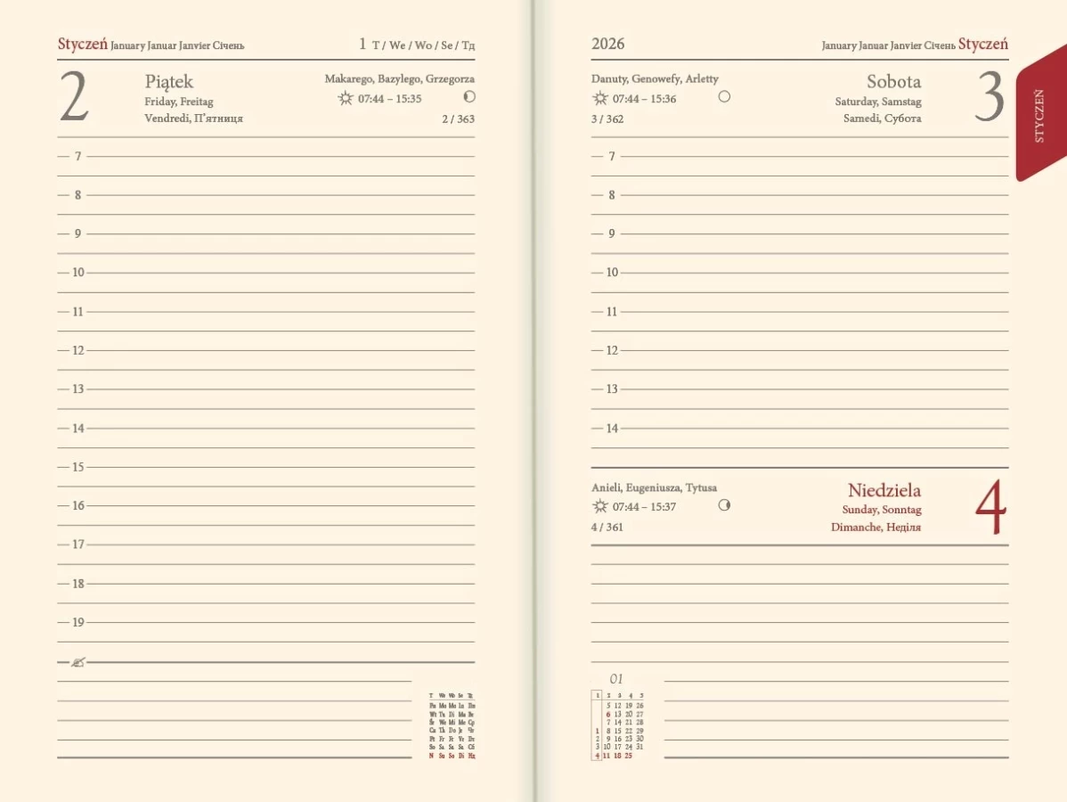 Kalendarz książkowy B6 - Rozkład Dzienny